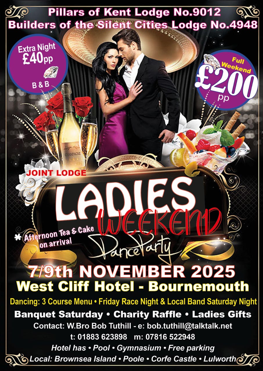 Pillars Ladies Weekend Bournemouth 7 - 9th November 2025