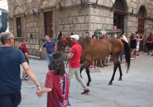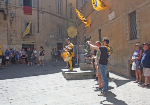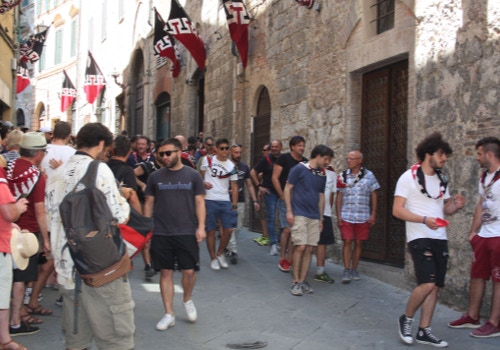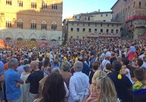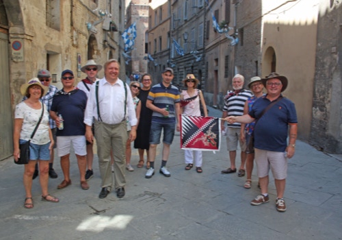 Lodge Members and guests enjoyed a trip to Siena in Italy to witness the Palio, the horse race that takes place twice a year around the town square for the honour of winning the Palio (Banner).